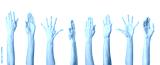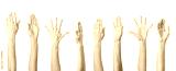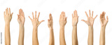Raised hand. Multiple images set of female caucasian hand with french manicure showing Raised hand gesture