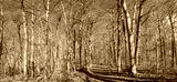 Panoramic view in a leafless deciduous forest in late autumn