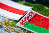 Belarusian flags facing each other, Government and opposition Belarusian flag, Political and social concept