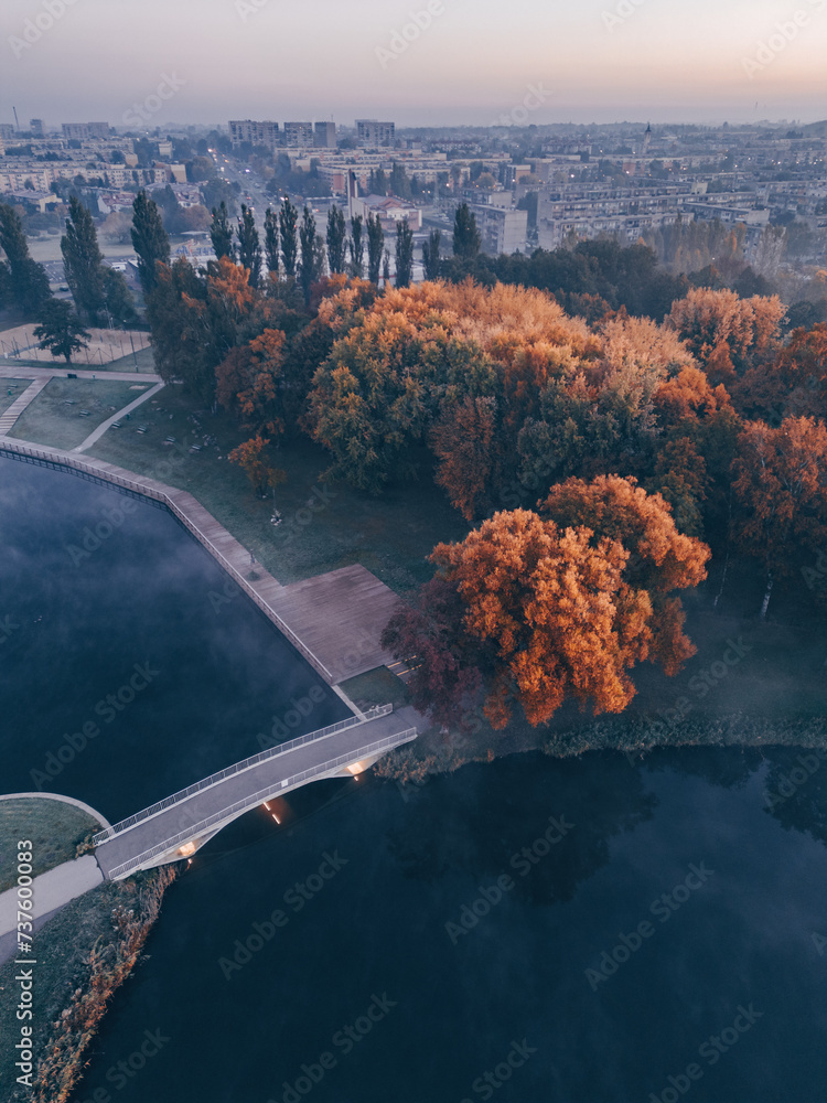 Public park called Lewityn in Pabianice City in autumn vibes- view from a drone
