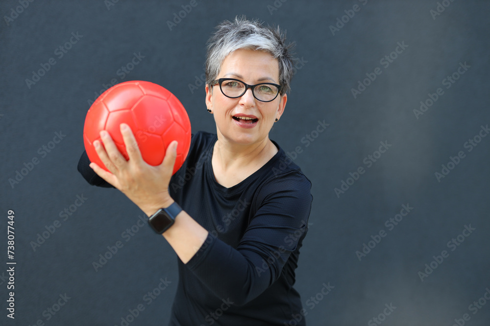 Mature woman enjoy a lively game with ball, showcasing their competitive spirit and happiness.