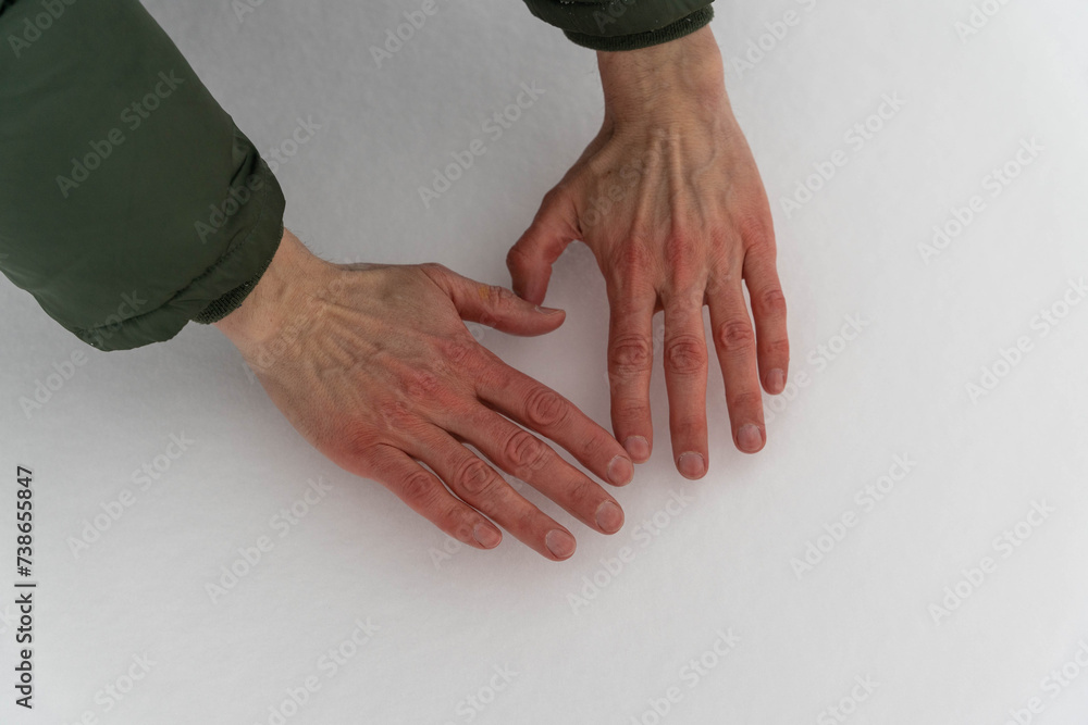 Man's hands turned red in snow: portrayal of resilience and immunity in winter