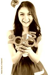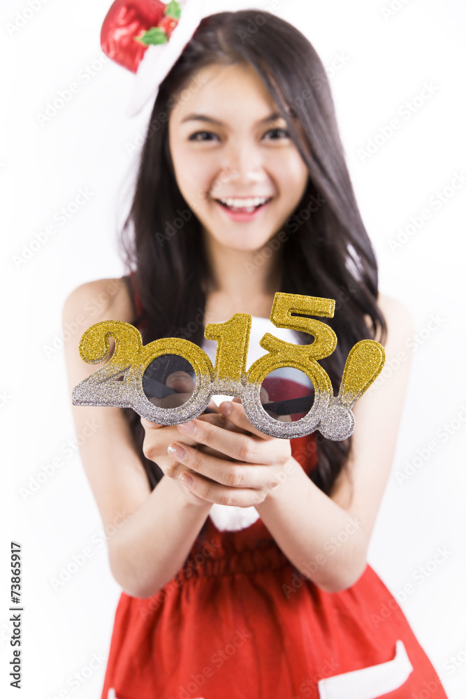 2015 Newyear celebration glasses presented by Asian woman wering