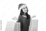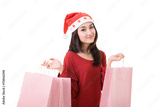 Christmas woman holding shopping bag with white background