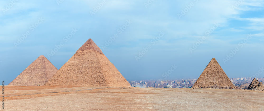 Giza Pyramid Complex at amazing sunset - Cairo, Egypt