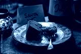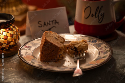 coffee cake on a plate with mug of hot chocolate waiting for santa