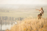 Children with tourists on a cliff at sunset