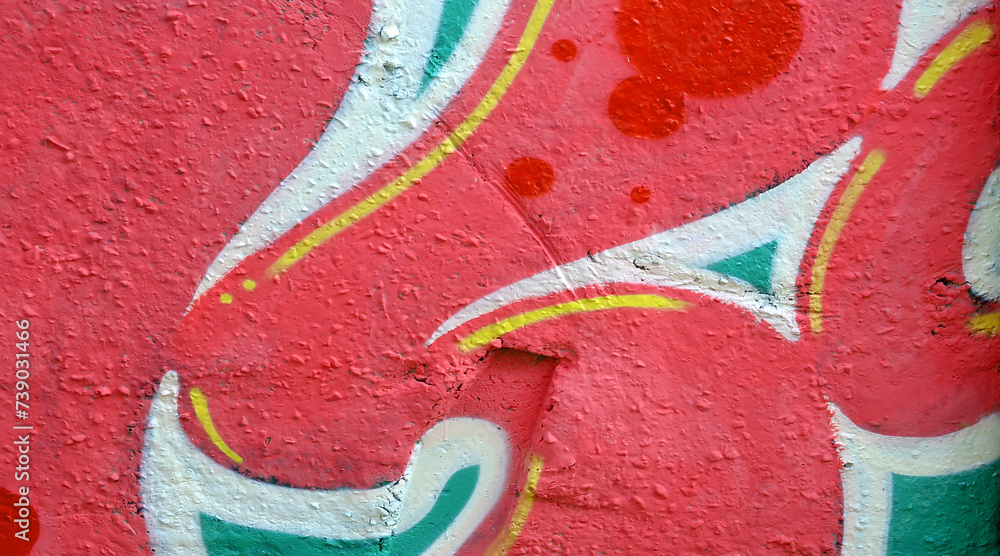 Colorful background of graffiti painting artwork with bright aerosol outlines on wall. Old school street art piece made with aerosol spray paint cans. Contemporary youth culture backdrop