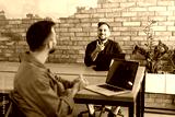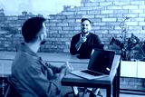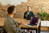 Collaboration in Motion, Professionals Working Together in a Modern Brick-Walled Office