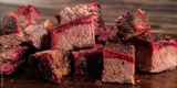 Beef Meat Sliced Roasted on wooden board. Cooking beef steak for restaurant, menu, advert or package, close up, selective focus