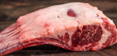 Beef steak raw meat close up on wooden board. Cooking beef steak slice for restaurant, menu, advert for package, selective focus