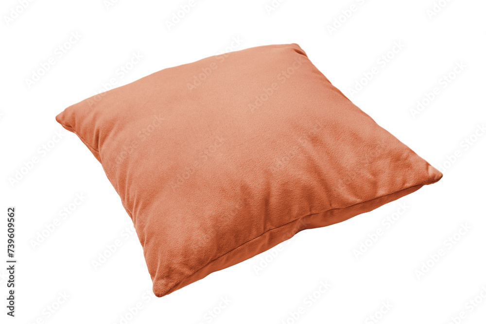 Decorative orange rectangular pillow for sleeping and resting isolated on white, transparent background, PNG. Cushion for home interior decor, pillowcase mockup, template for design.