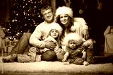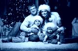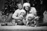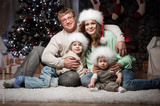 Family at home New Year's Eve by the Christmas tree