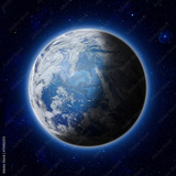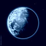 Blue Planet Earth, Global World with clouds, star in sky, space.