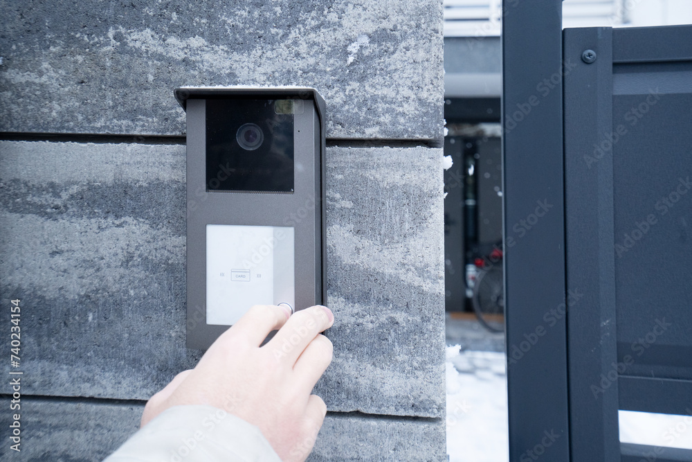 cctv surveillance system, home security camera outdoor, entrance intercome, man ringing at door