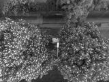 A drone view at the flowering chestnut tree