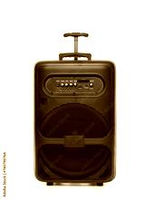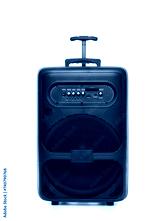 Black portable speaker cabinet isolated on white background, Electric Portable speaker with amplifier speaker design over white, clipping path.