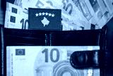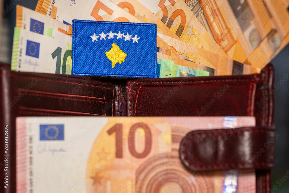 Kosovo euro, Kosovo's entry into the euro zone, financial concept, Common European currency, Kosovo symbol and wallet with euro banknotes
