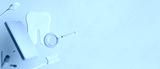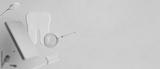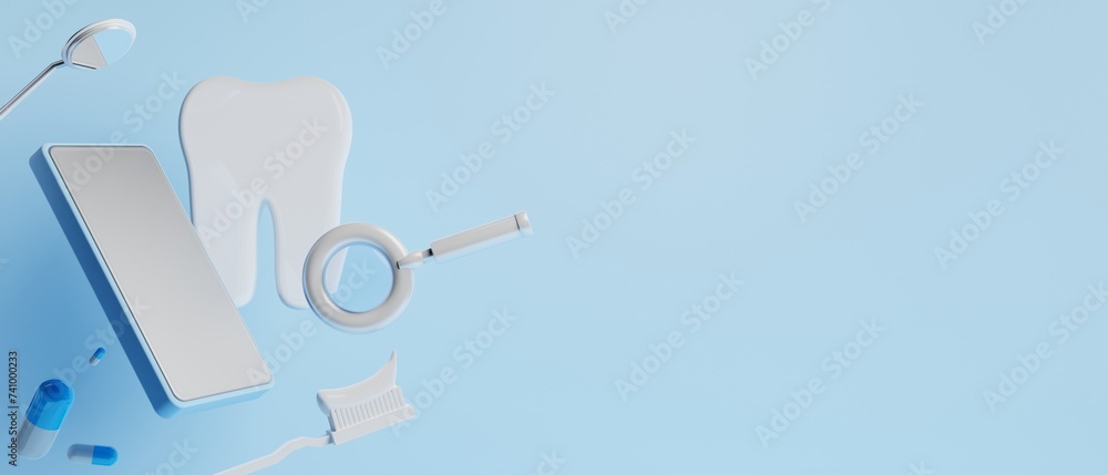 3d object illustration for dentist tooth with tools of medical health care for dental clinic hospital bussiness