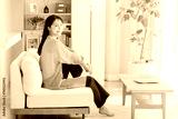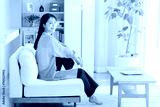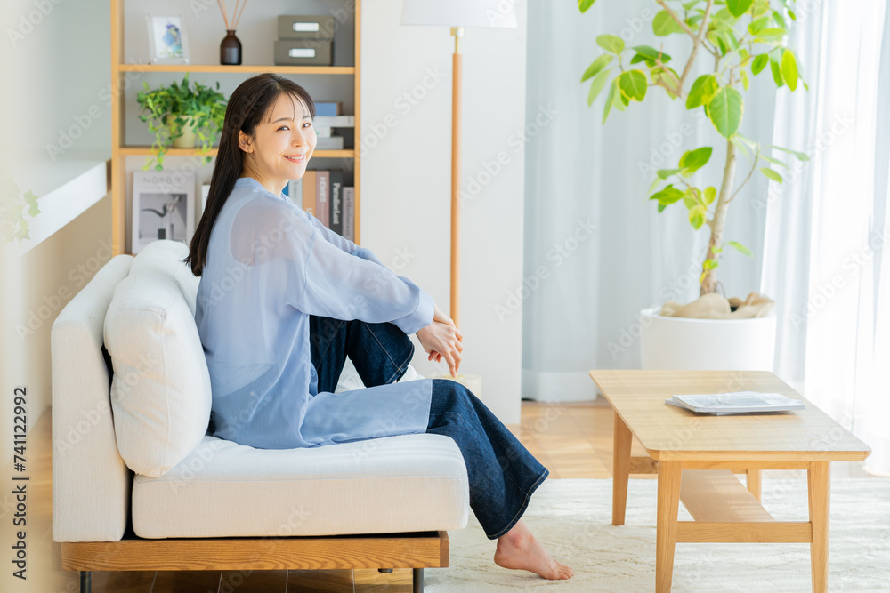 リビングでくつろぐ若い女性