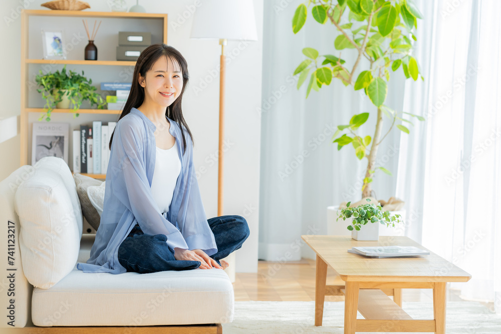 リビングでくつろぐ若い女性