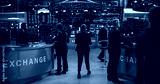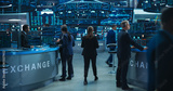 Stock Exchange Traders Working in an Office with Multiple Computer Screens with Real-Time Stocks, Commodities and Exchange Market Charts. Managers Work for Investment Banks, International Companies