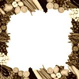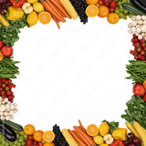 Rahmen aus Früchte, Obst und Gemüse freigestellt mit Textfreir