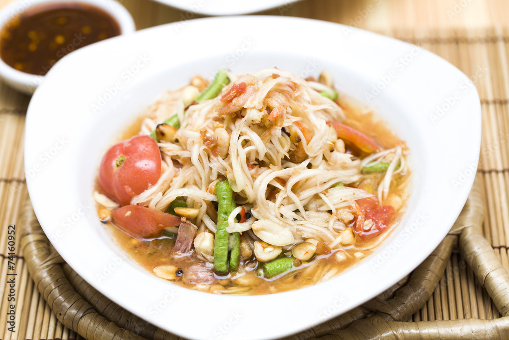 Papaya salad (Som Tam) Thai cuisine spicy delicious