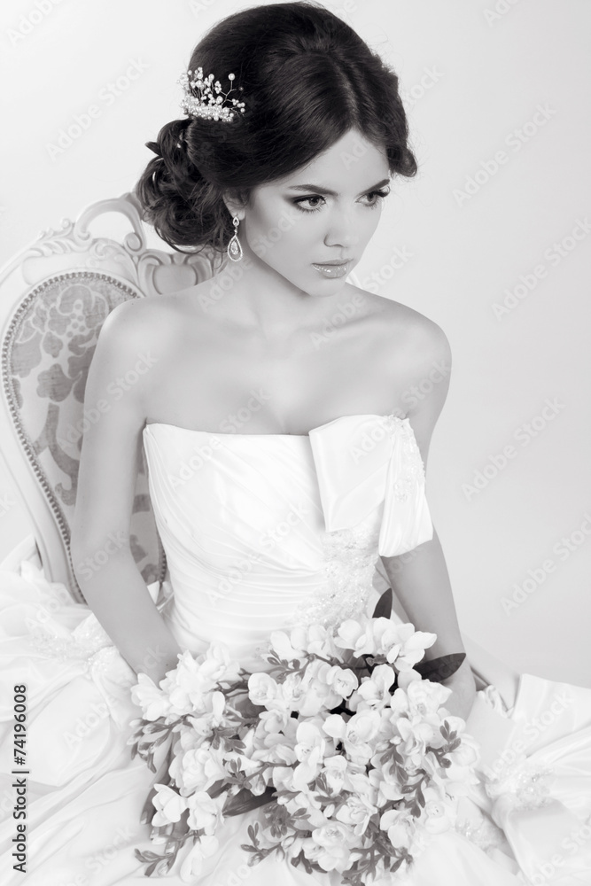 Bride. Beautiful girl wearing in modern wedding dress. Fashion m