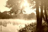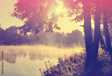 Autumn lake in morning lights