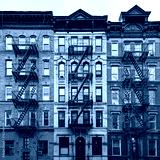 Colorful historic brick apartment buildings on 12th Street in the East Village neighborhood of Manhattan in New York City