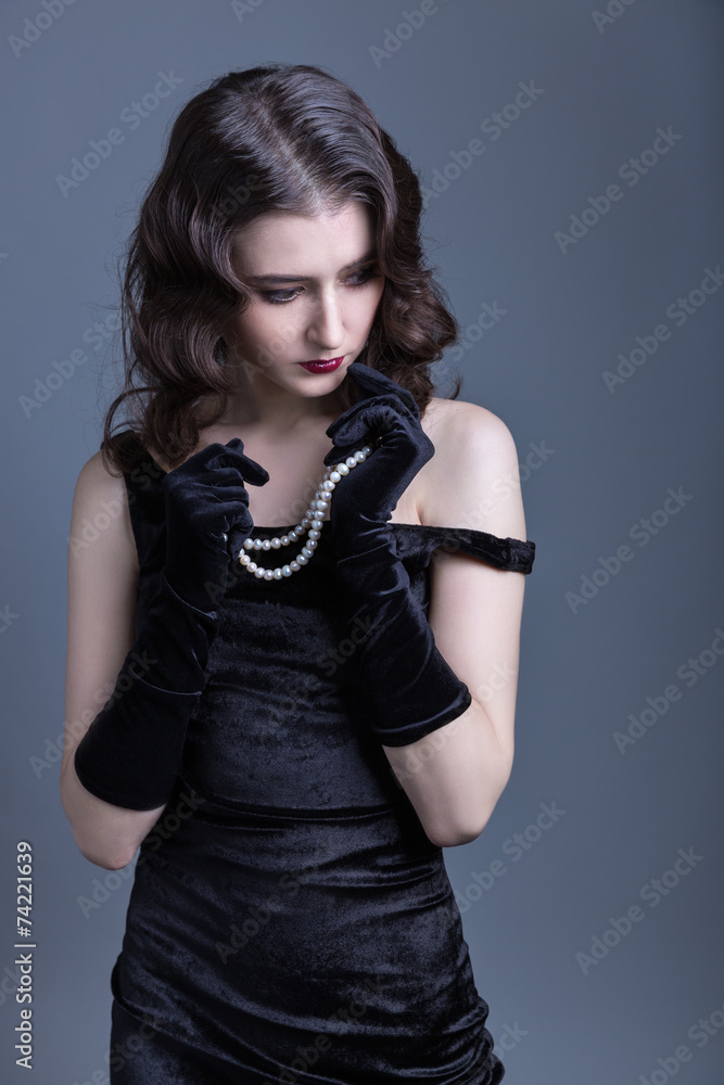 lady in a black velvet dress