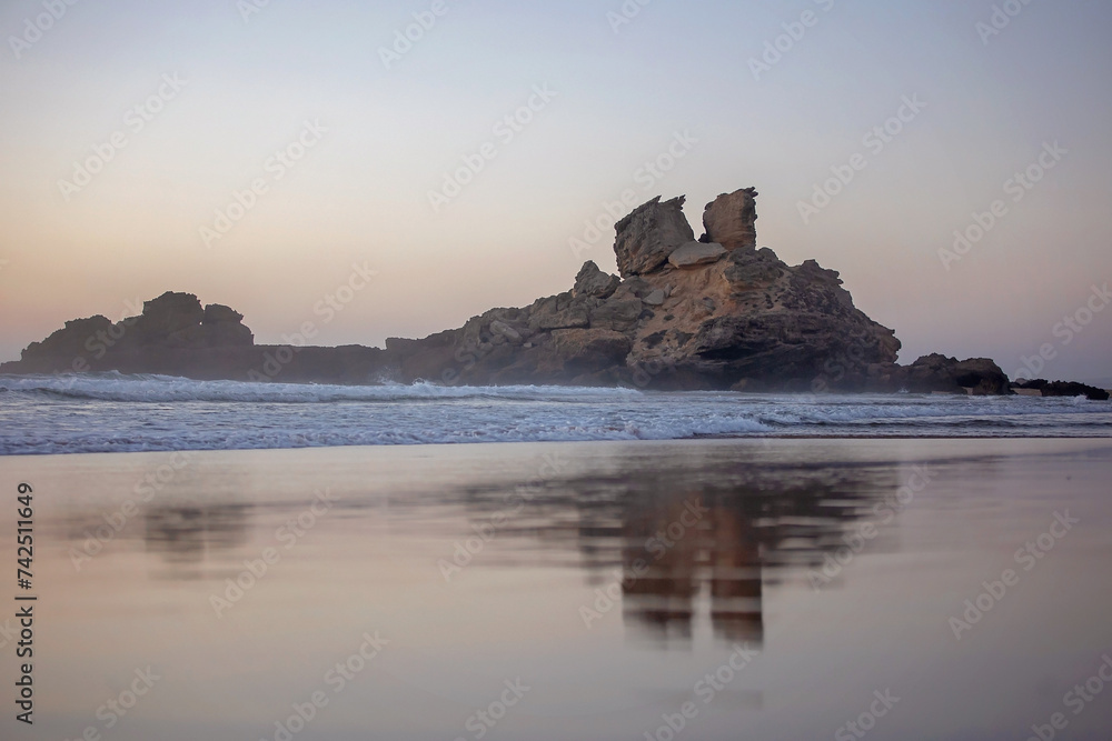 Happy children, boys, playing on the beach on sunset, kid cover in sand, smiling, laughing
