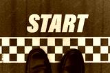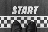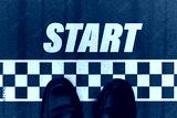 Businessman standing on asphalt concrete floor with Start line.successful concept.