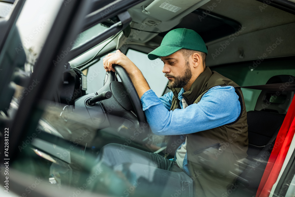 Truck driver feeling tired during the ride.
