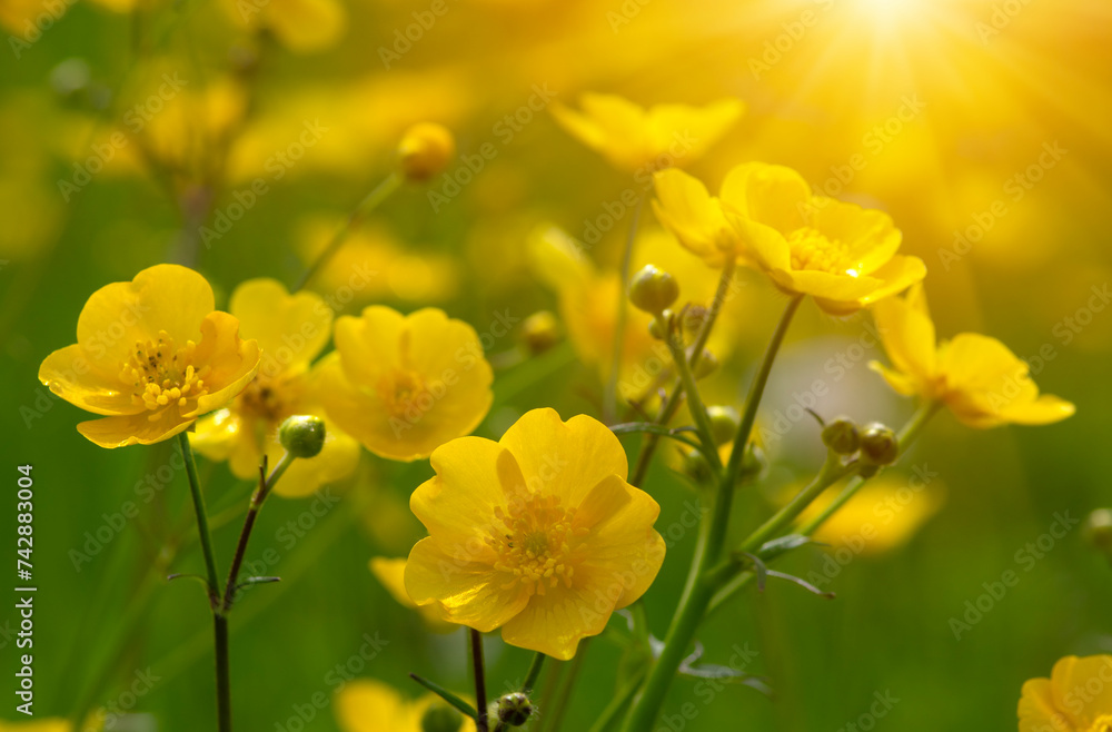 Spring yellow flowers on a field