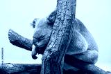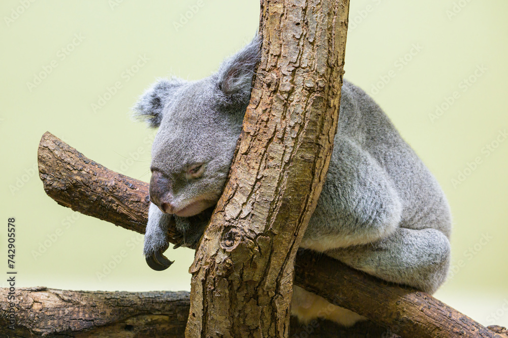 A cute little koala sleeping on a tree in a zoo