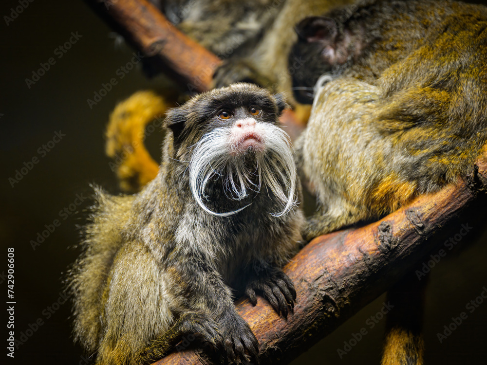 Portrait of an Emperor tamarin in a zoo