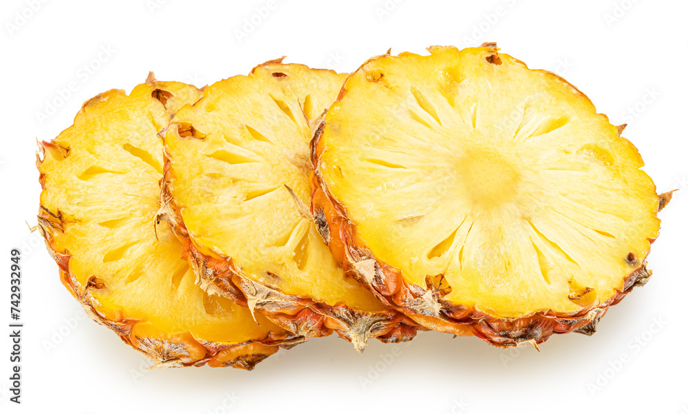 Ripe pineapple and pineapple slices isolated on white background. File contains clipping path.