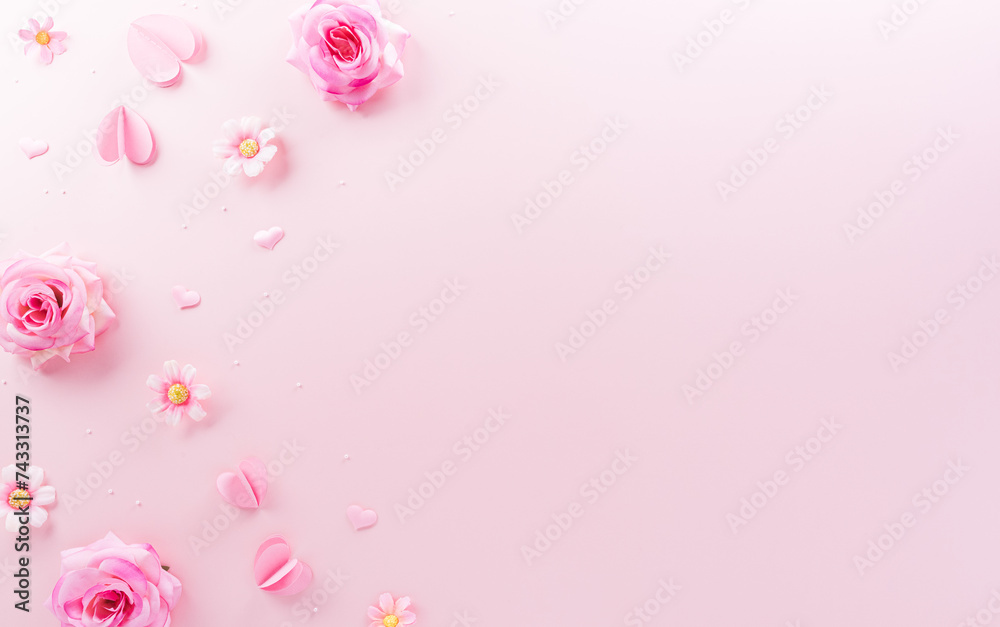 Happy Mother's day and Women's Day decoration concept made from flower on pastel background.