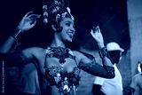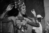 Happy woman, samba dancer and performance with costume for tradition at carnival or festival. Face of female person or exotic performer with band for culture or dancing at party or concert in Rio
