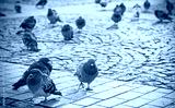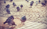 Retro filtered picture of birds in a city.