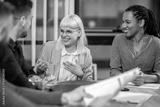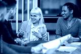 Office colleagues having discussion during meeting in conference room. Group of men and women in modern office.