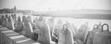 Retro filtered photo of concrete block breakwater in Kolobrzeg, Poland.