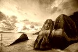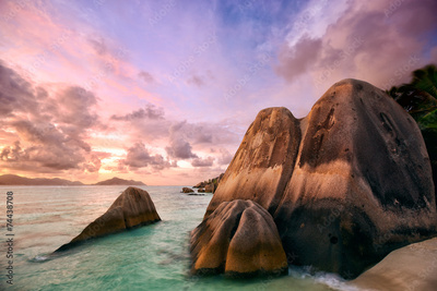 Anse Source d'Argent beach at sunset, La Digue, Seyshelles