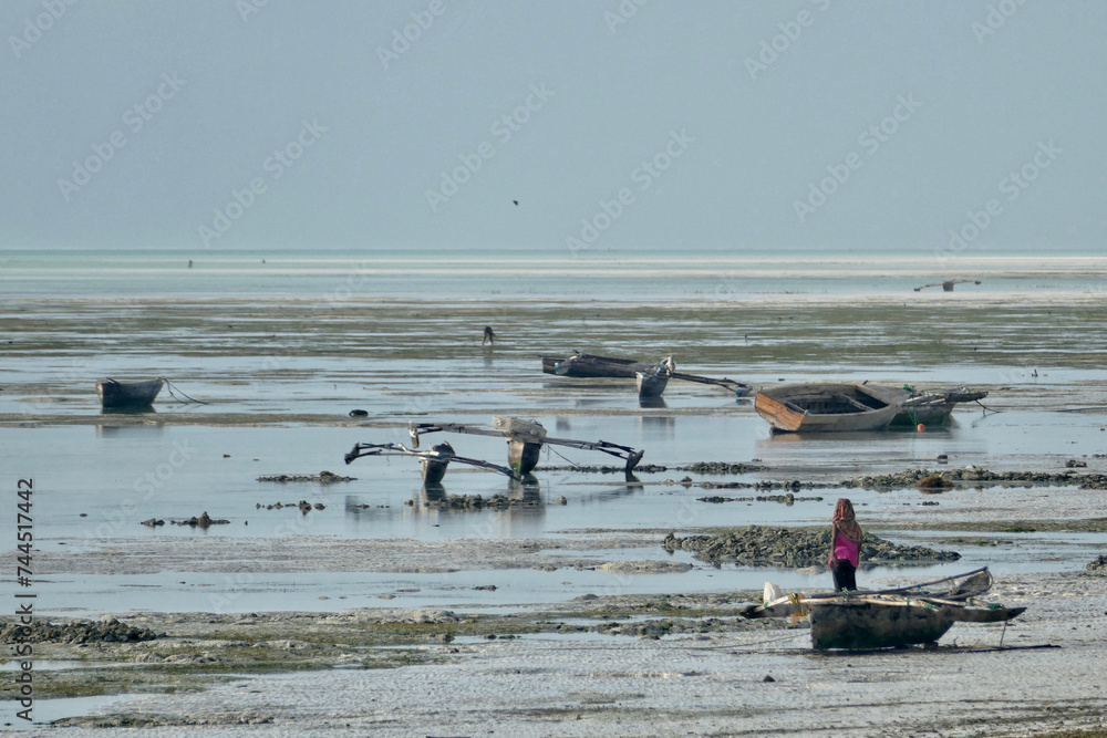 Scenic view of moored boats at Jambiani beach, Zanzibar