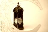 Ramadan Mubarak, moon and lantern on white background, Islamic tradition, holy month