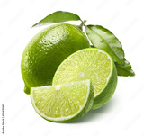 Whole lime, half and quarter slice isolated on white