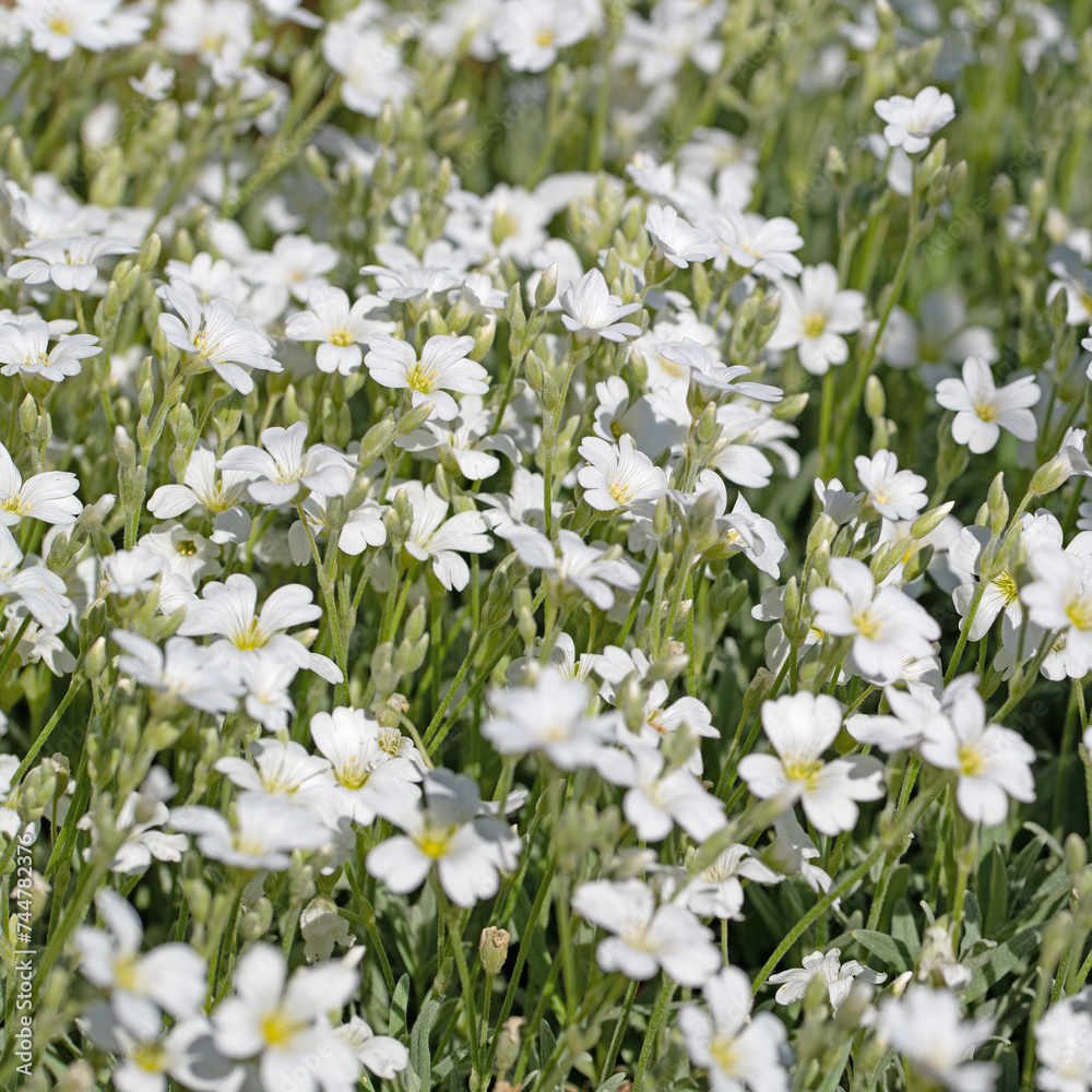 Filziges Hornkraut, Cerastium tomentosum, im Frühling