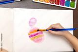 Children finger and paints on a table. children playing the colorful paints.